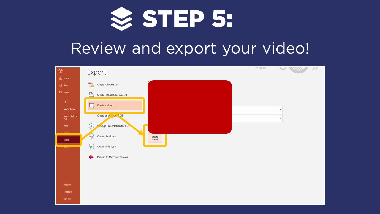 Now that you've created your PowerPoint slides filled with animations, videos and sound - it's time to review and export your video!